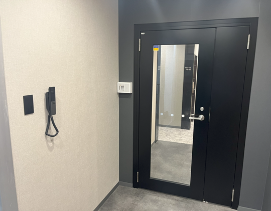 2階のエントランスにて,当事務所の部屋番号(18)をご確認いただき,設置されている内線電話でご連絡いただくか,到着したことをお電話(03-6826-0112)でご連絡ください。エントランスまでお迎えに伺います。